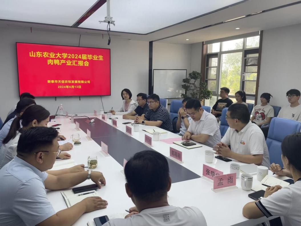 “这些毕业生的研究课题取自于生产问题,成果解决我们企业在肉鸭养殖中的难题,真的是太好了!他们也让我看到新时代农科学生的专业素养和实践能力,将来一定是强农兴农的后起之秀。”在汇报会上,新泰市天信农牧发展有限公司董事长刘光洲连连称赞。